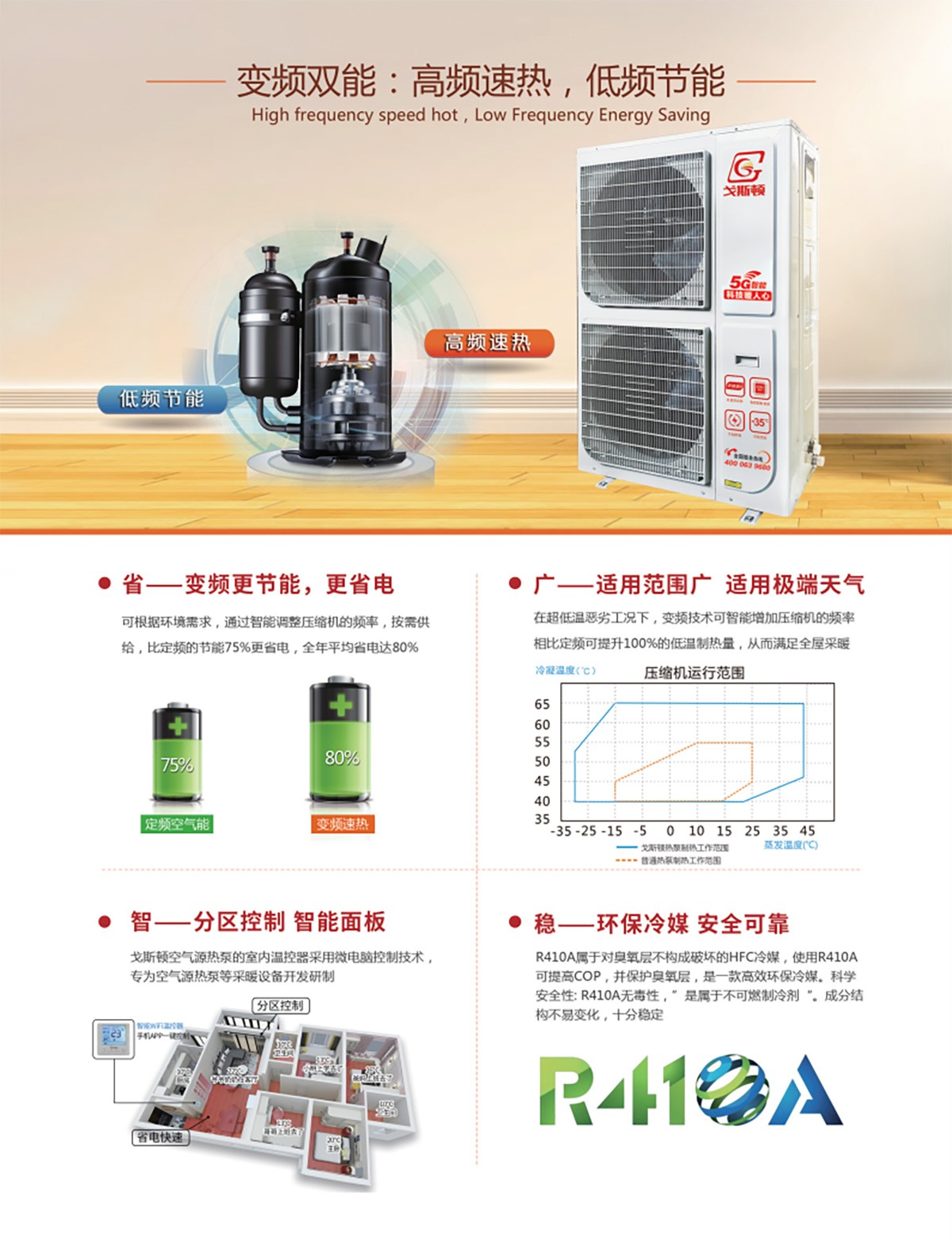 產(chǎn)品特點:冷暖一體、不占室內(nèi)空間、溫度濕度均勻、使用費用低